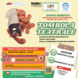 Non solo gioco, non solo teatro. La tombola teatrale è un gioco spettacolo ideato da Paola Maccario con la Compagnia Teatro del Ghigno che assicura divertimento e risate a tutti i partecipanti.